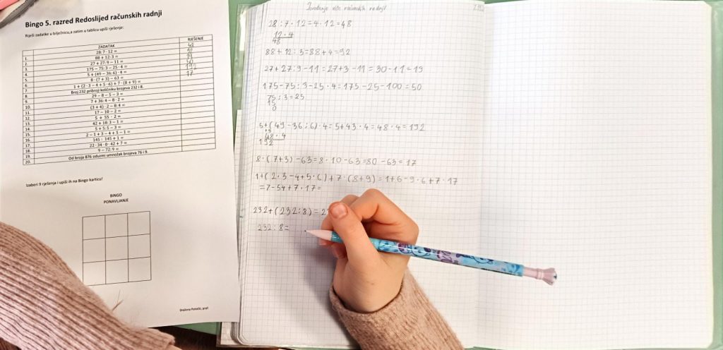 Kako bi igra imala pravu obrazovnu vrijednost, ključno je prilagoditi je matematičkim sadržajima. Umjesto da učenici samo nasumično iscrtavaju brojeve, bingo se može osmisliti na način da svako polje na kartici sadrži matematički zadatak, a rješenja se izgovaraju ili prikazuju na ploči. Tako učenici ne samo da sudjeluju u igri, već aktivno razmišljaju i računaju kako bi pronašli točne odgovore. Ovisno o uzrastu i gradivu, na karticama se mogu nalaziti geometrijski pojmovi, decimalni brojevi, razlomci, jednadžbe… Na taj način bingo postaje prilagodljiv različitim razinama znanja i omogućuje učenicima ponoviti ili proširiti svoje matematičke vještine igrajući igru.